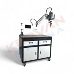 M3-16(Metrik 16) kapasiteli servo elektrikli kılavuz çekme makinaları, hidrolik makinalara göre daha az enerji tüketir, güçlü redüktör ve servo motor uyumu ile yüksek tork elde edebilir,daha hassas ve temiz diş yüzeyleri çıkartabilir,sessiz çalışır ve dokunmatik ekranı türkçe ingilizce dil desteğine sahip kullanıcı dostu arayüzü ile oparatörlerin proses ayarlarını kolaylıkla yapmalarını sağlar.Akrobat kılavuz çekme kolu sayesinde parçanın herhangi bir yerinde ki deliğe kılavuz çekebilirsiniz.Üniversal kafa sayesinde yatay ve dikey veya herhangi bir açı da ki deliğe kılavuz çekebilirsiniz. Otomatik,manuel ,gagalama ve akıllı mod gibi çalışma modları sayesinde istediğiniz kapasitede,derinlikte,ilerleme ve dönüş hızında hassas ve temiz bir diş yüzeyi çıkarabilirsiniz. Hava üfleme ve yağ püskürtme sayesinde takım üzerinde ki talaşları yok eder ve takımı otomatik soğutabilir , bunu yaparken minumum seviyede kılavuz yağı kullanır